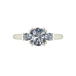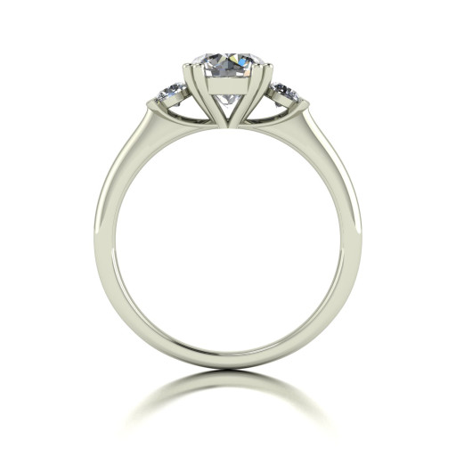 Moissanite Trilogy Ring hand set with a centre 7.0mm Round Brilliant Moissanite and two 3.0mm Round Brilliant Moissanite. Total Eq 1.50ct